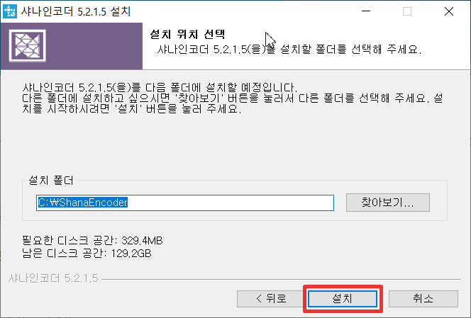 설치완료되면 다음과같이 "샤나인코더 홈페이지 방문하기"