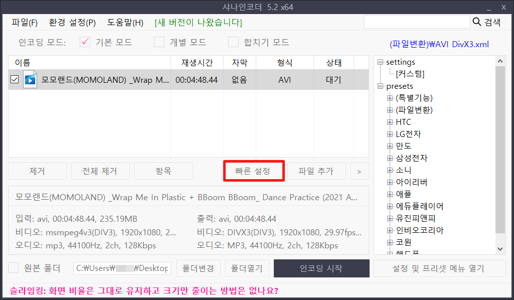 바닥인코더라는 동영상변환 프로그램이 많이 사용되고 있지만, 저는 그보다 이게 더 마음에 들더군요.