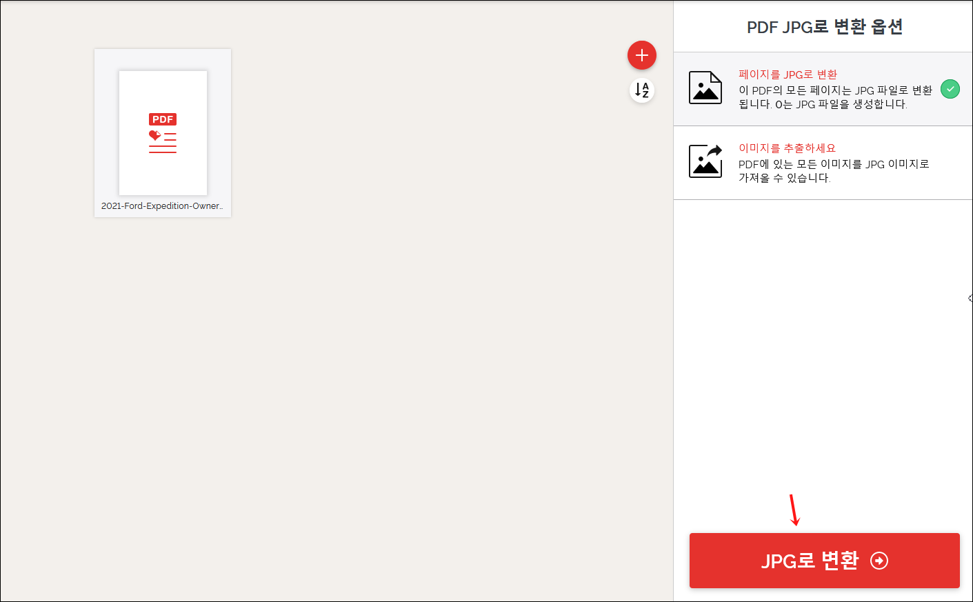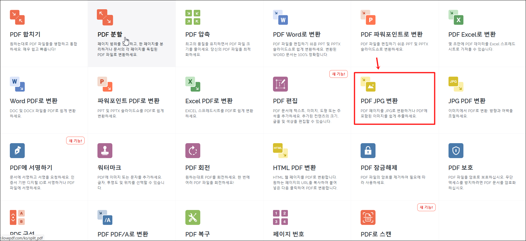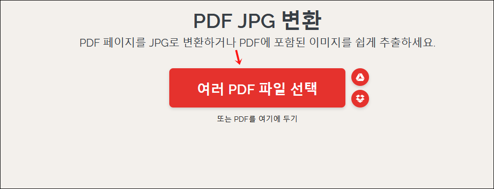 여기서 빨간 네모로 표시한 PDF JPG 변환 을 눌러주세요.