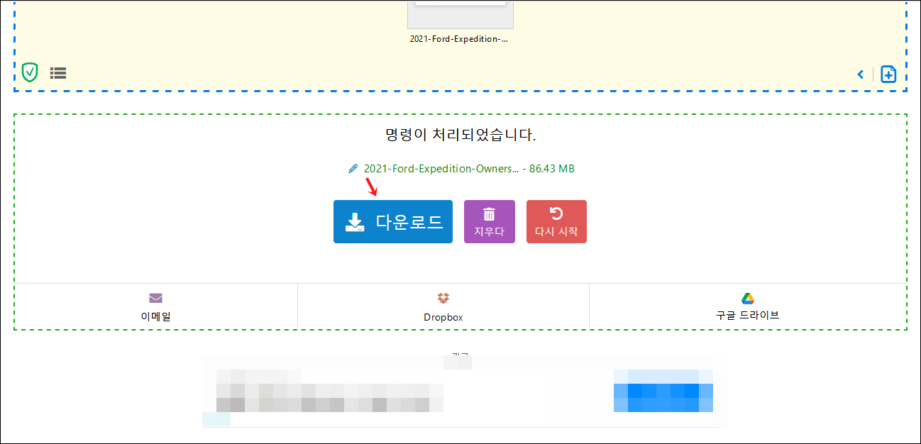 완료되면 다운로드 를 눌러 받으시면 됩니다.