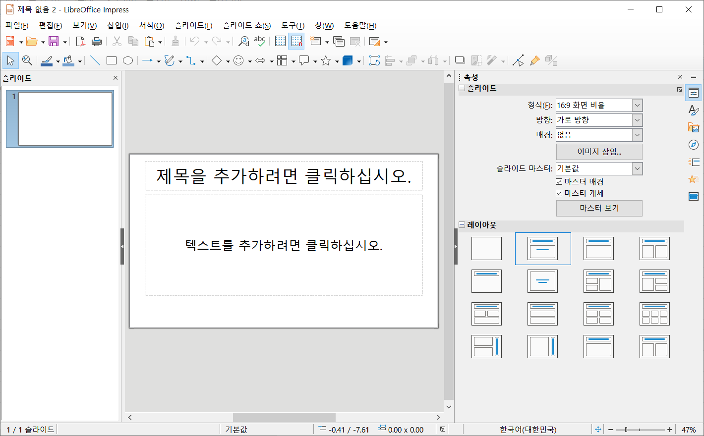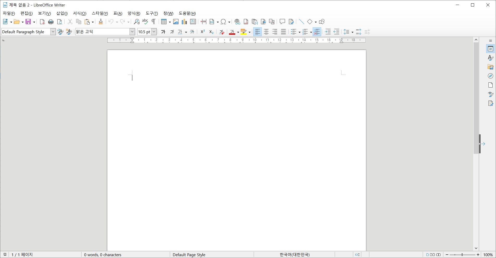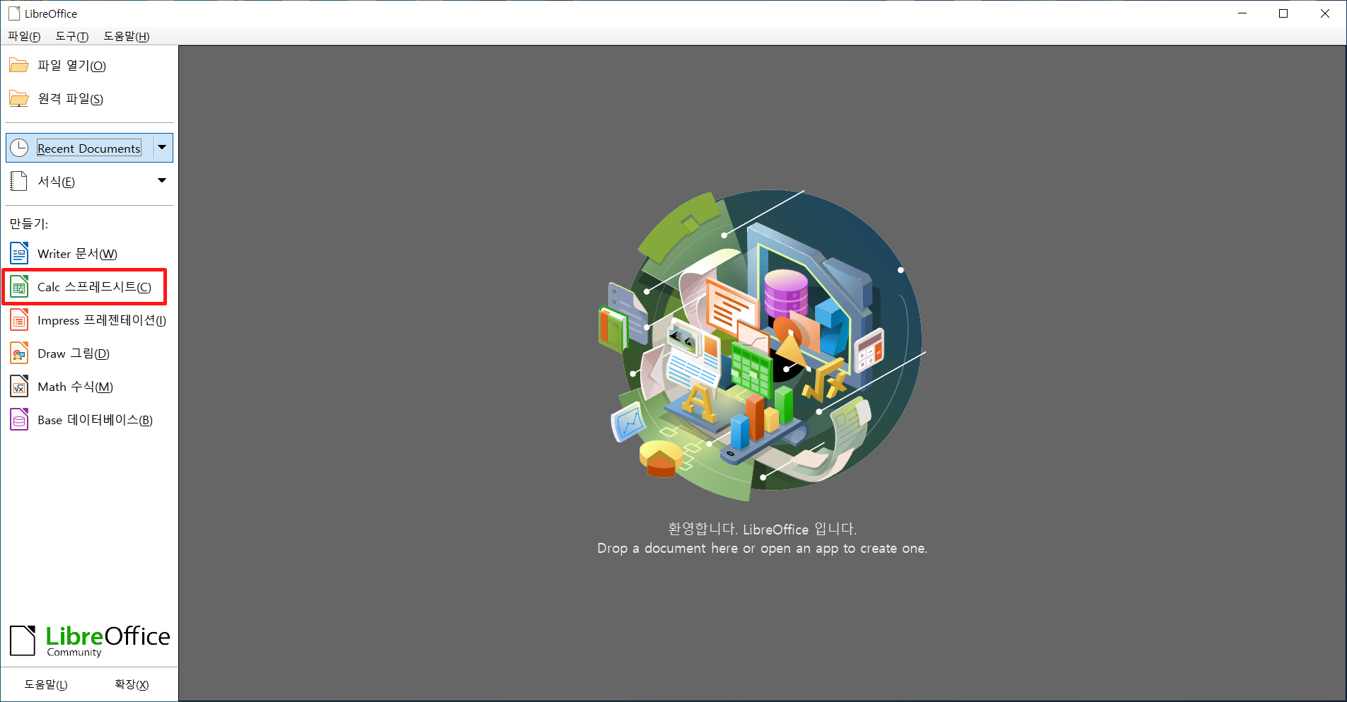 그럼 리브레오피스(LibreOffice) 프로그램이 실행됩니다.
