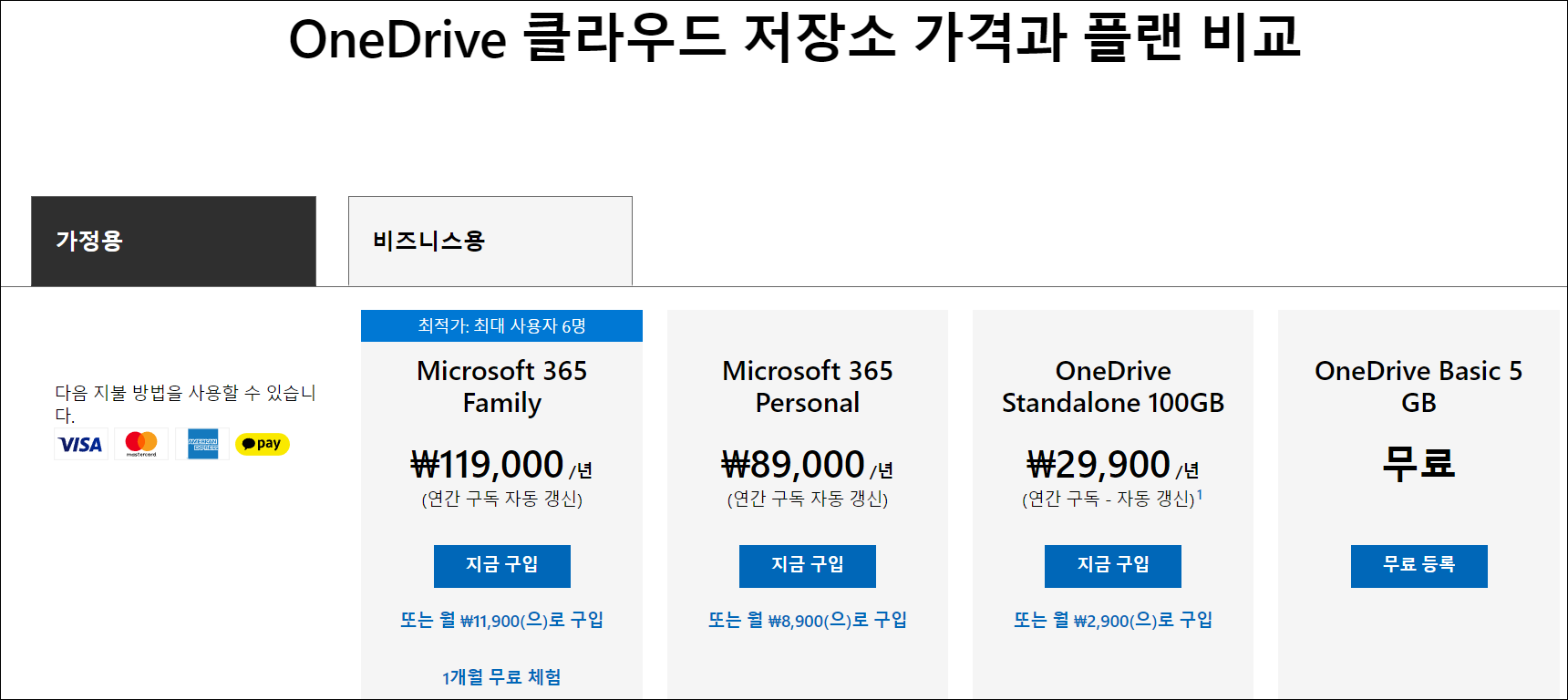 OneDrive 클라우드 저장소 가격과 플랜 비교