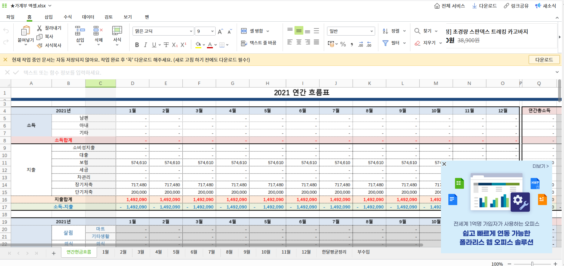 폴라리스 오피스 웹버전은 무료 이용가능합니다.