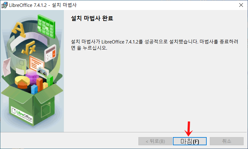 설치 완료 화면입니다. 마침을 눌러주세요.