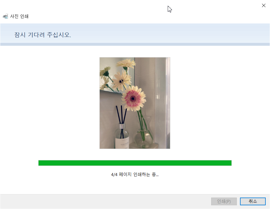 사진 인쇄 창이 뜨면 프린터선택에서 [Microsoft Print to PDF] 선택하시고 [인쇄] 를 누릅니다.