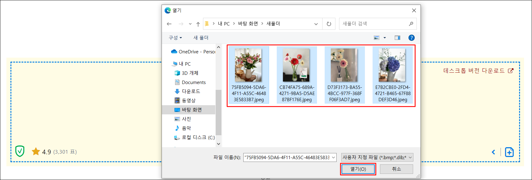 탐색기 창이열리면 JPG 파일을 추가 해줍니다.