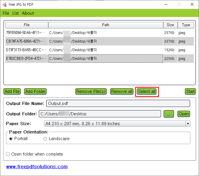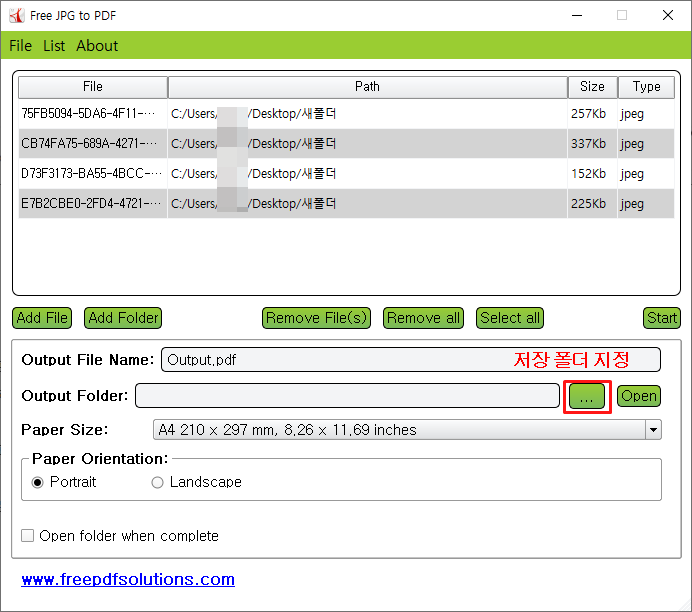 Free JPG to PDF’는 아주 심플한 인터페이스를 가지고 있는 jpg pdf 변환 프로그램입니다.