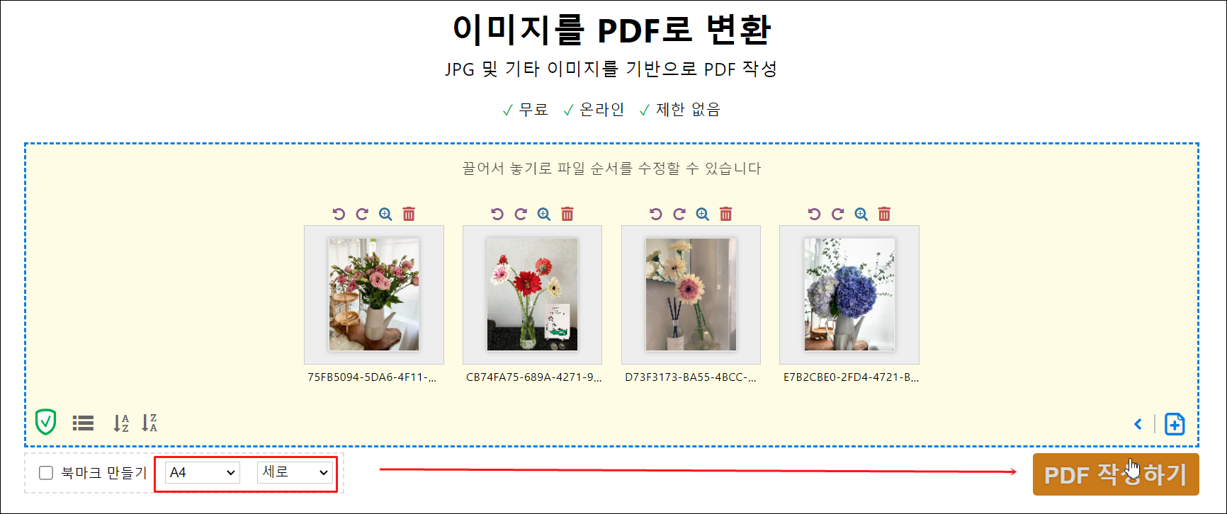 잘 만들어졌죠?^^ 오늘은 간편하게 jpg를 pdf로 변환 해주는 사이트 및 프로그램을 소개해 드렸는데요. 다른 프로그램과 다르게 사진 크기를 설정할 수 있고 한 번에 여러개의 파일을 변환할 수도 있고요. 변화되는 파일의 이름을