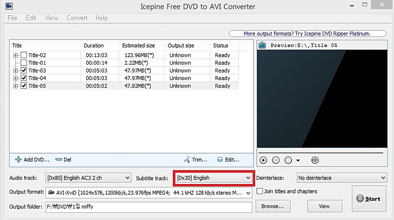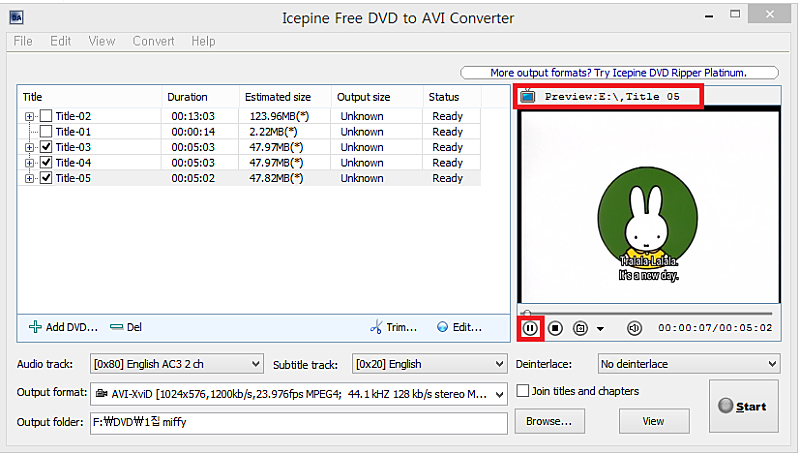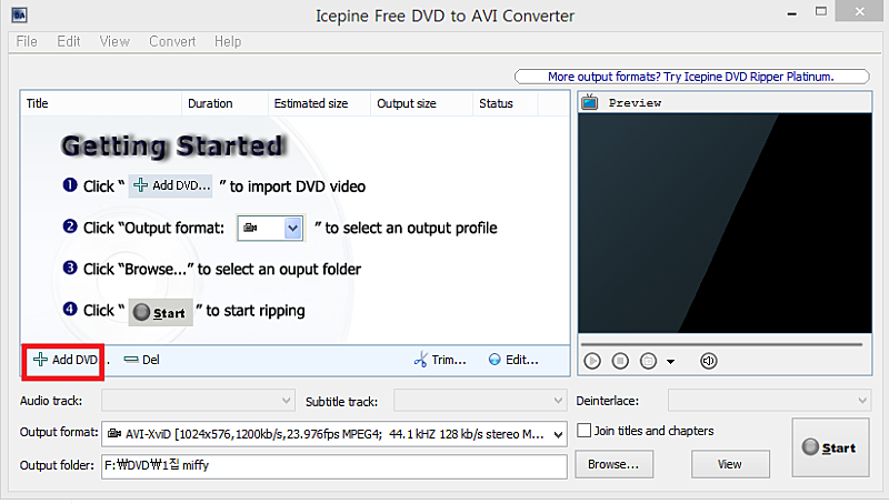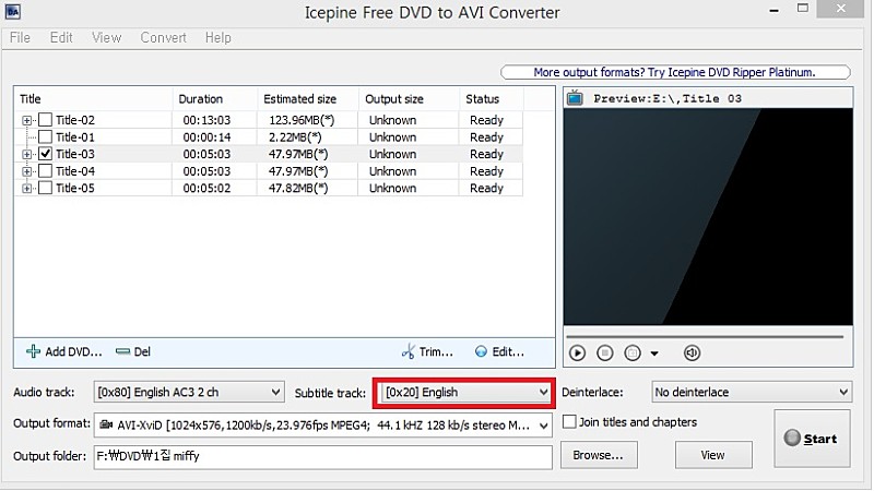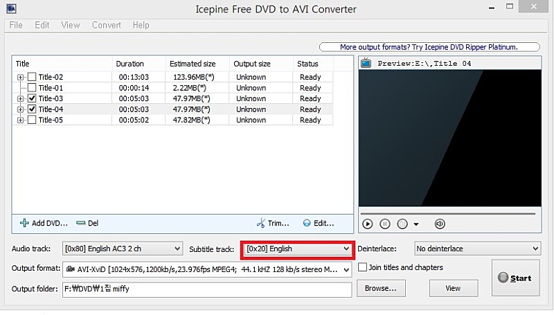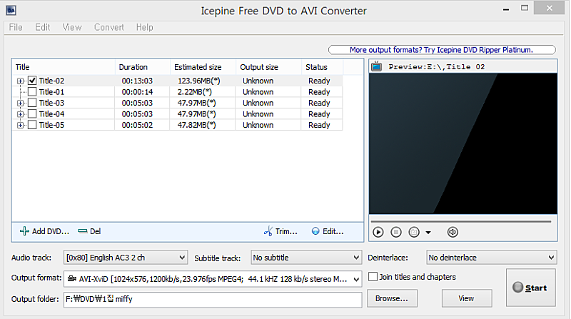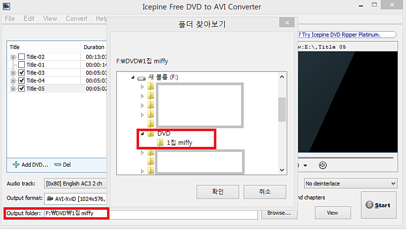 Icepine Free DVD to AVI Converter 에서 dvd 파일 추출하면