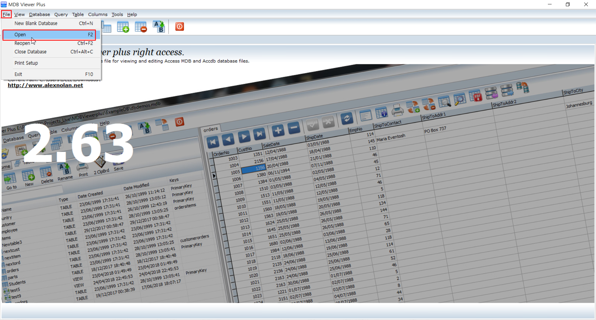 MDB Viewer Plus 프로그램 실행 화면입니다..