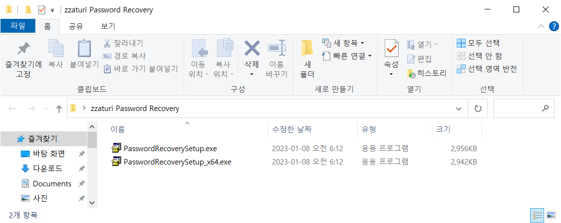 64비트 윈도우는 PasswordRecoverySetup_x64.exe 설치 하시면됩니다.