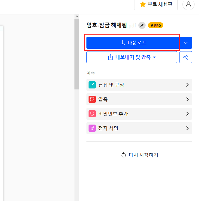 여기에서 핑크색 'PDF잠금해제' 버튼을 눌러주시면 됩니다.