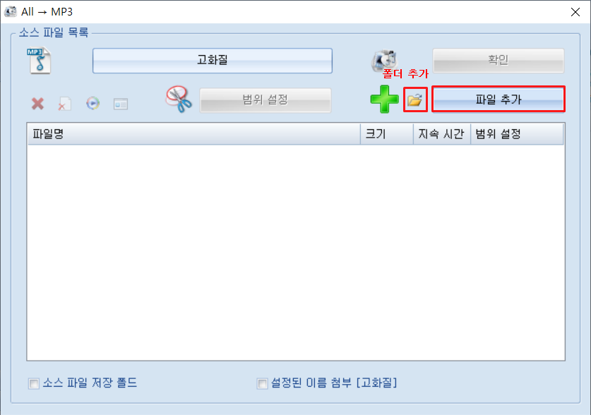 드래그 앤 드롭이나 파일 추가 버튼을 클릭하여, 변환시키고자 하는 파일을 추가해주세요.