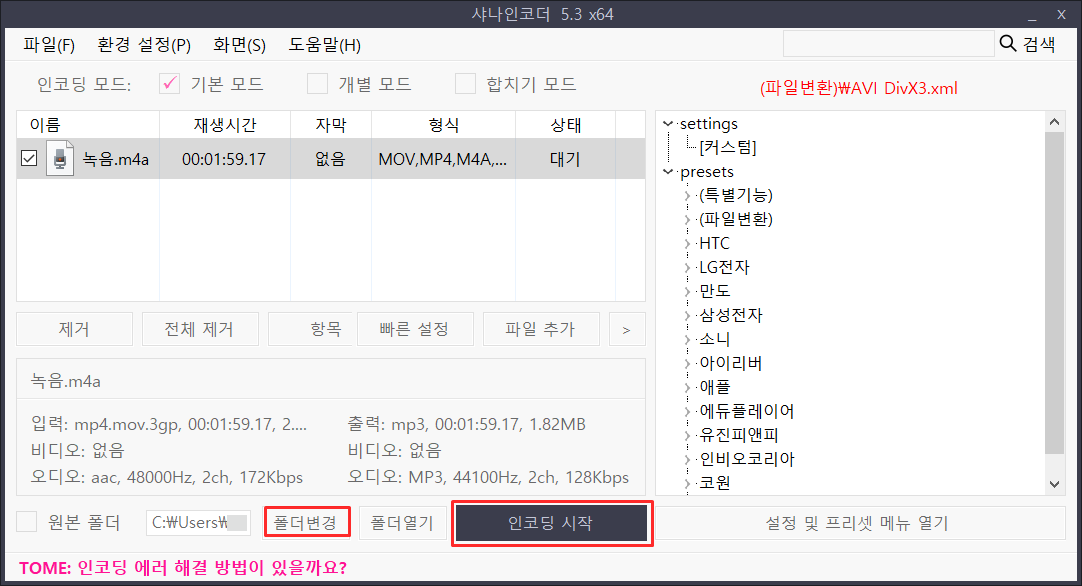 그때마다 여러저기 m4a파일 mp3변환 방법을 검색하시기보단
