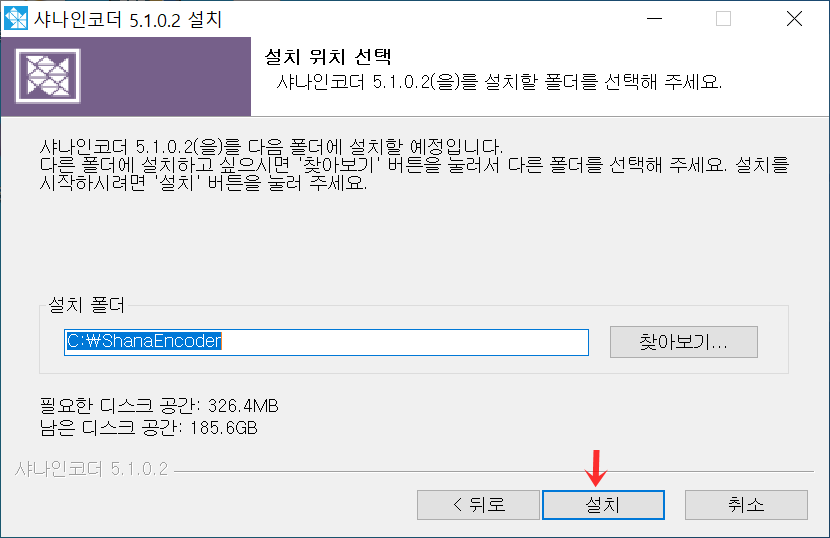 설치폴더는그대로 냅두고 [설치]를 클릭하면 설치가 시작됩니다.
