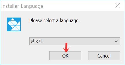 실행하면 요런창이 열리는데 한국어로 선택되어있으니 그대로두고