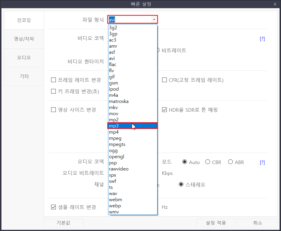 무료프로그램에 한글까지 지원하니까 금상첨화죠, 다양한 포맷변환이 됩니다.