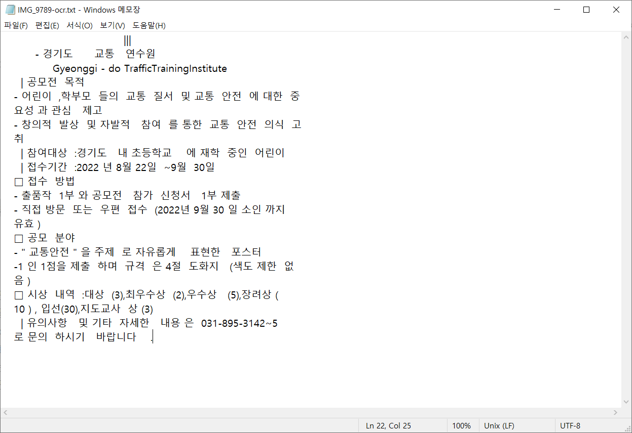 그럼 이미지에서 텍스트 추출이 됩니다..
