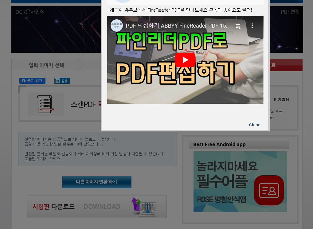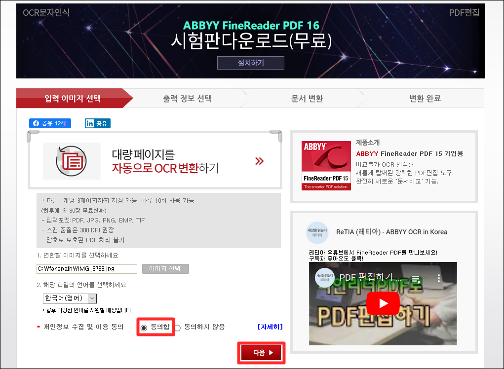 3. 무료 ABBYY OCR 문자인식 사이트입니다.