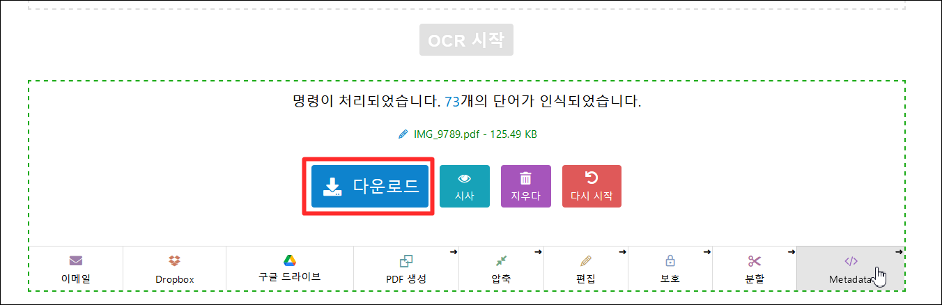 그리고 OCR 시작 을 눌러주세요.