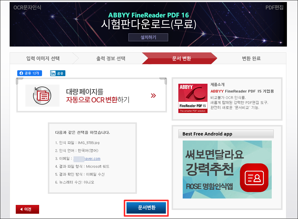 문서변환 클릭 해주세요.