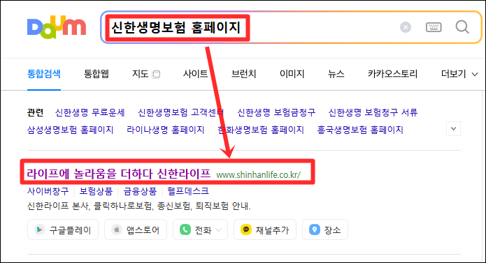 검색창에 '신한생명 무료운세' 라고 검색하기