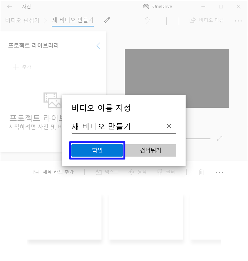 비디오 이름 지정 창이 뜨면 '확인' 을 눌러주며됩니다.
