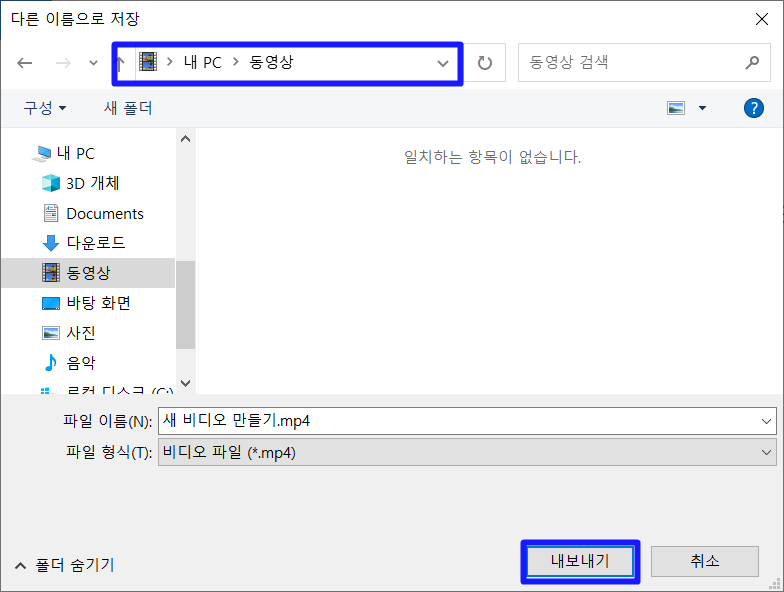 저장위치를 지정후 [내보내기] 버튼을 눌러주면 됩니다.