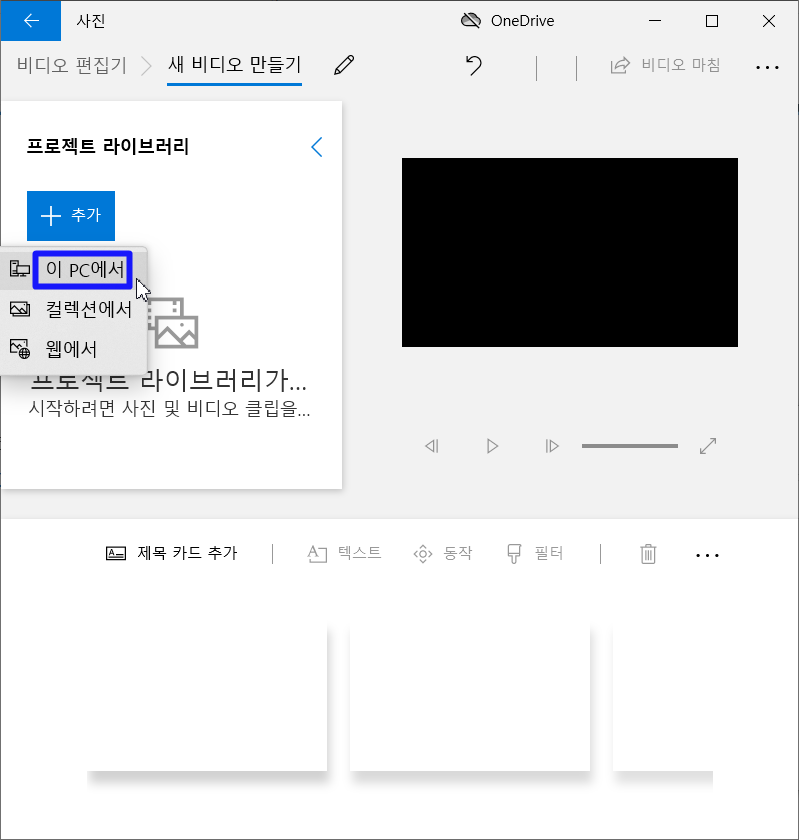 그리고 '이 PC에서' 를 누르고 합치고 싶은 동영상을 찾아 추가해줍니다.