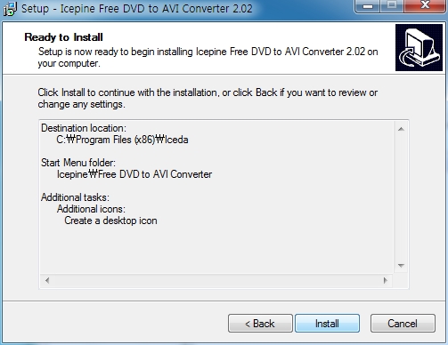 변경 하지않으면 C:\User\사용자이름\ Documents\ icepine free dvd to avi converter 폴더에 저장됩니다.