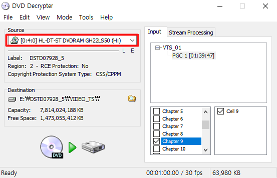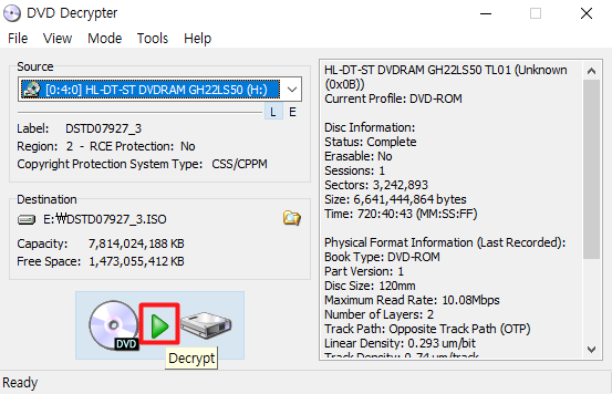 DVD Decrypter 장점은 복사방지(락) 걸린 DVD 도 변환 할 수 있습니다.