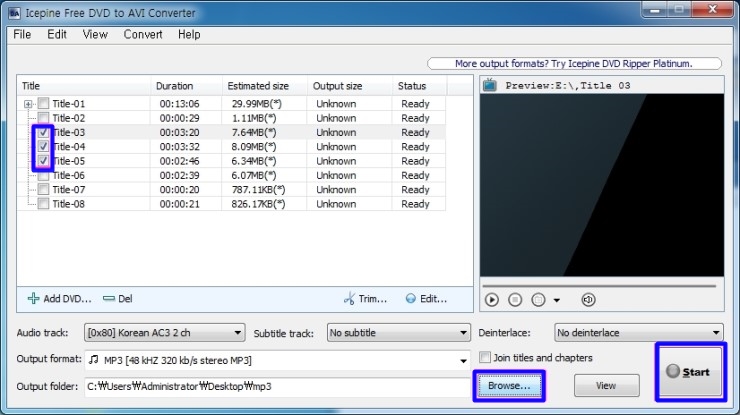 첫 번째는 icepine free dvd to avi converter 프로그램을 이용해서