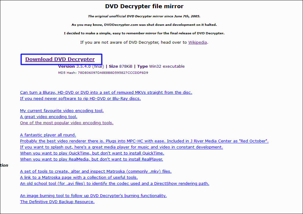 상단에 Download DVD Decrypter 링크를 눌러 프로그램을 다운받습니다.