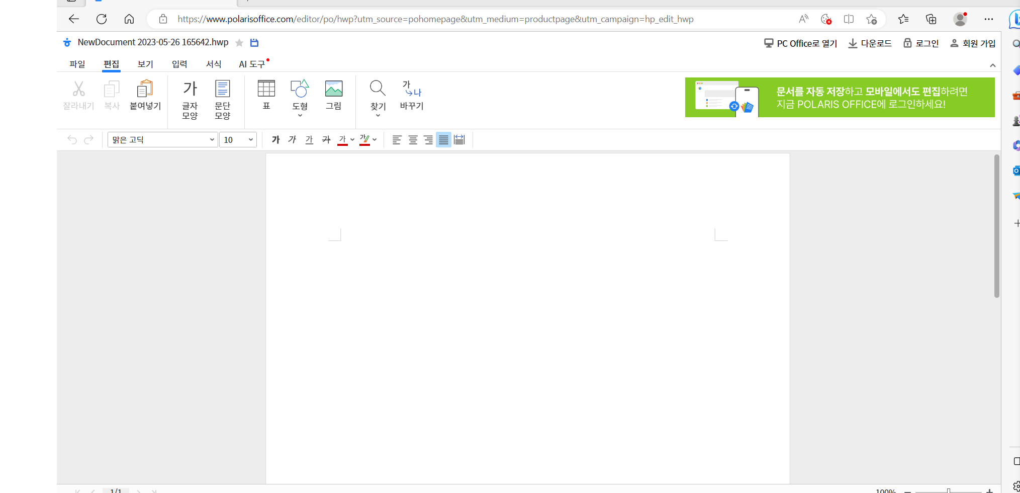 폴라리스 오피스 웹을 이용할 수 있습니다.