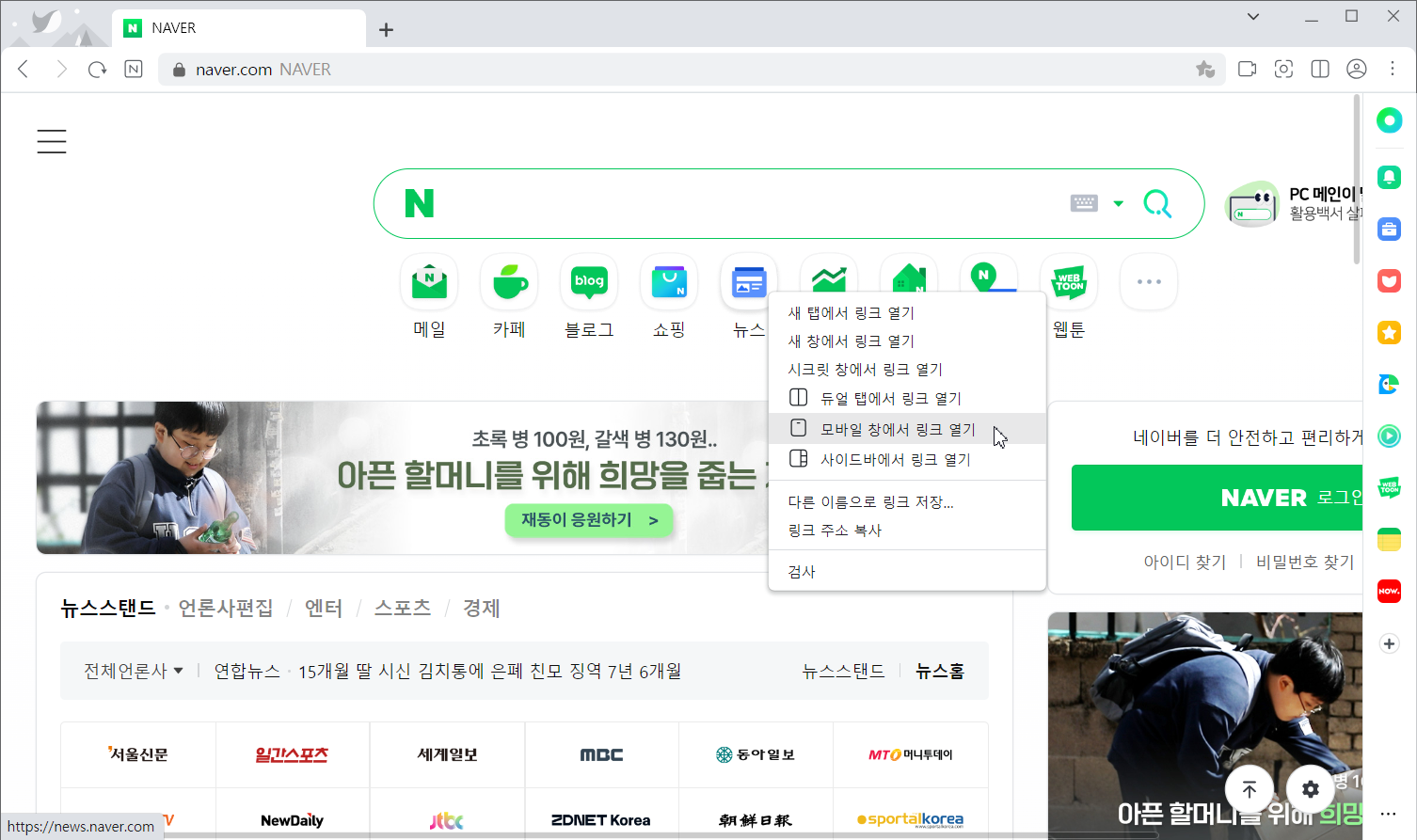 무엇보다 컴퓨터에서 모바일버전으로 바로 볼수 있는 기능이 있네요..