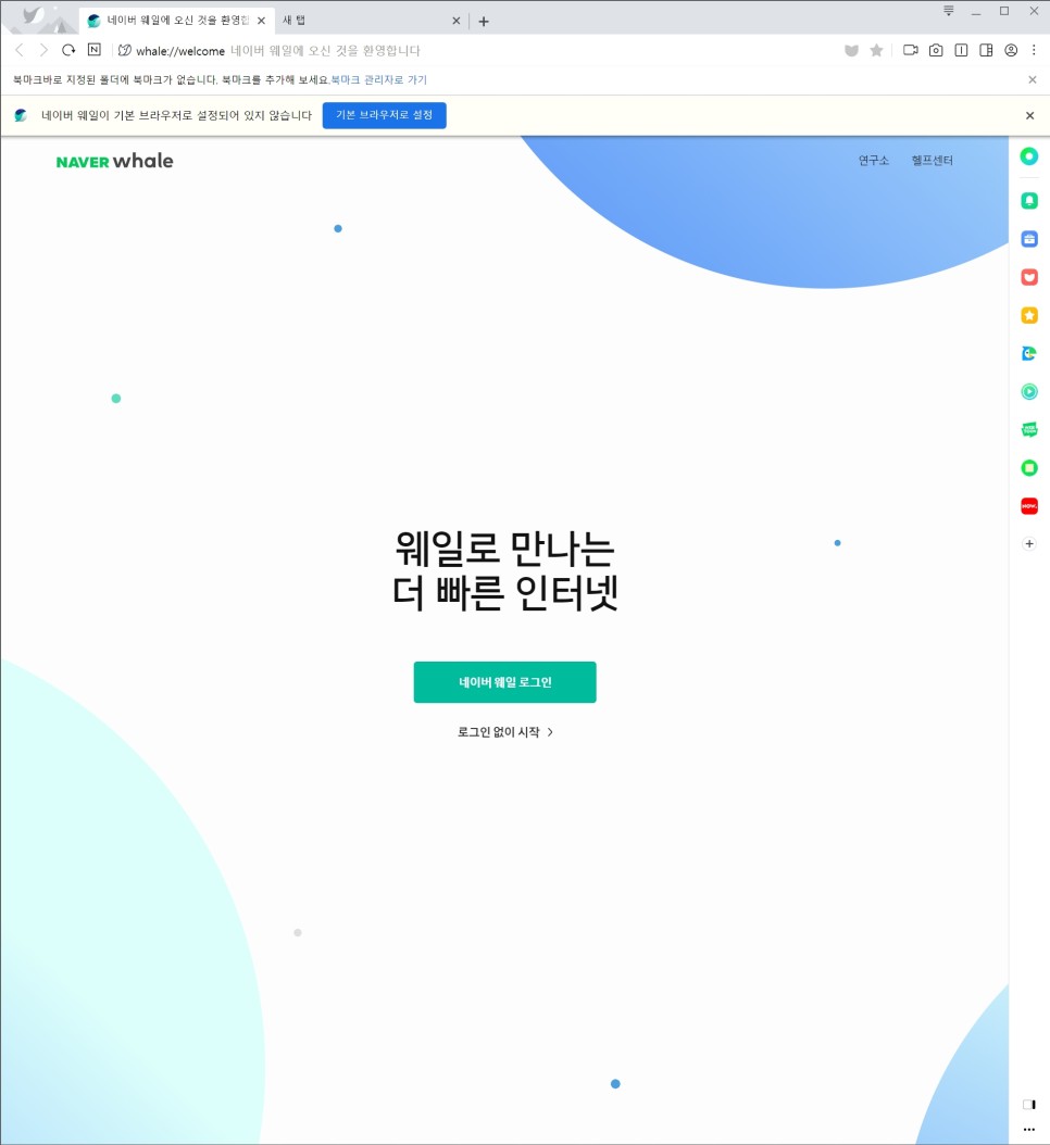 바로 위에 화면이 네이버 웨일 첫 화면입니다.