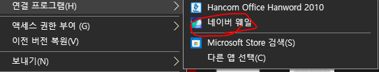 한글(HWPX, HWP) 파일 > 우클릭 > 연결프로그램