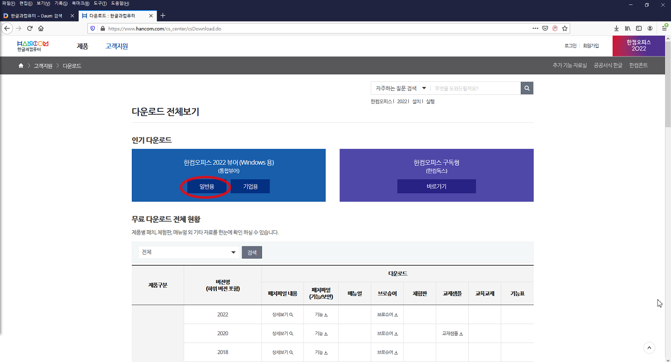 그럼 다운로드 페이지로 이동되는데 일반용 을 눌러주세요.
