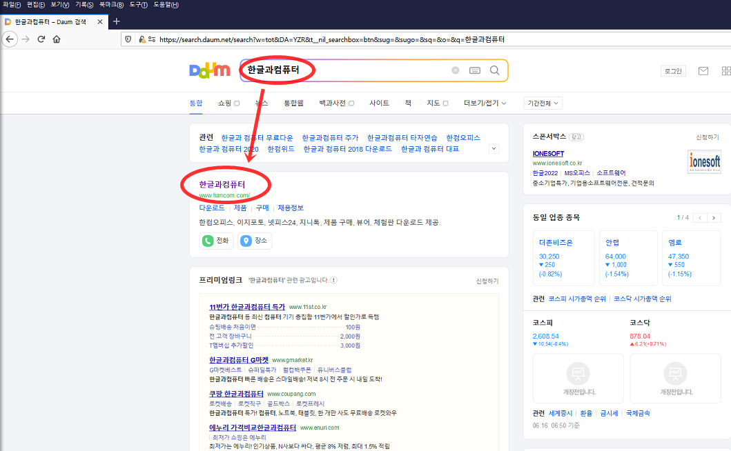 포탈사이트 Daum에서 한글과컴퓨터 검색하고 사이트에 접속하면됩니다.