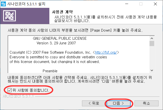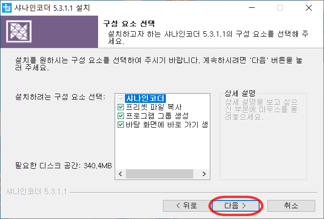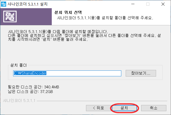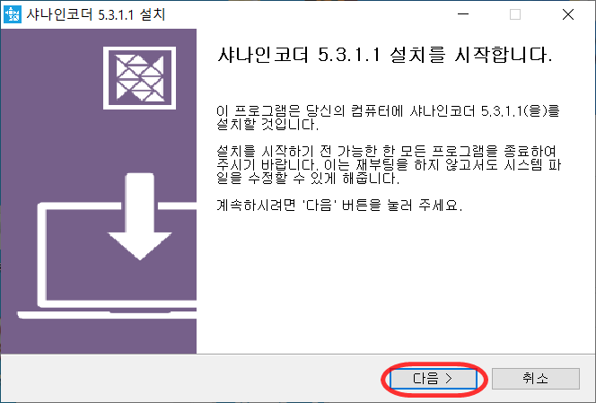 샤인코더 다운이 완료되면 설치파일을 실행해주세요.
