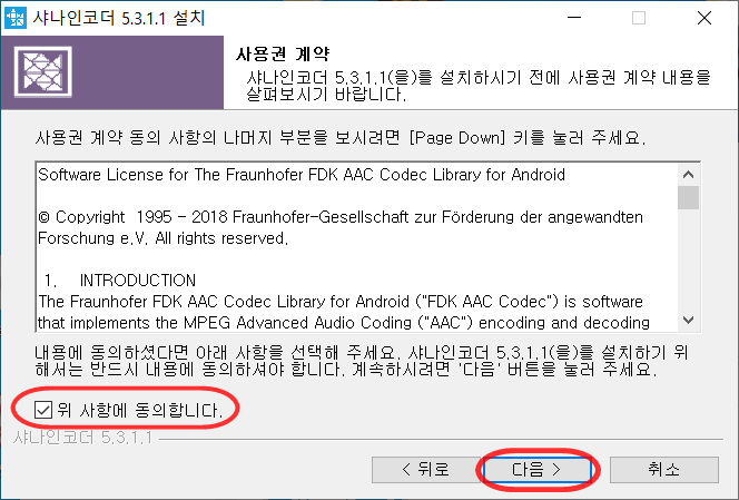 "위 사항에 동의합니다." 선택하고 다음 버튼을 눌러주세요.