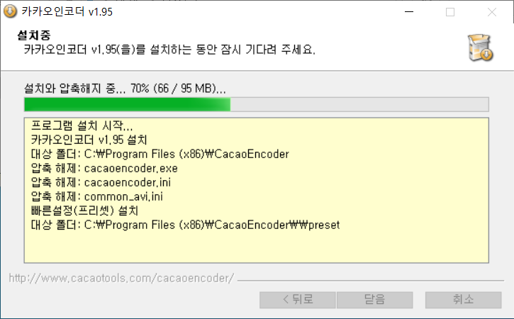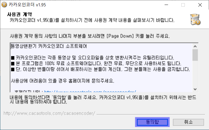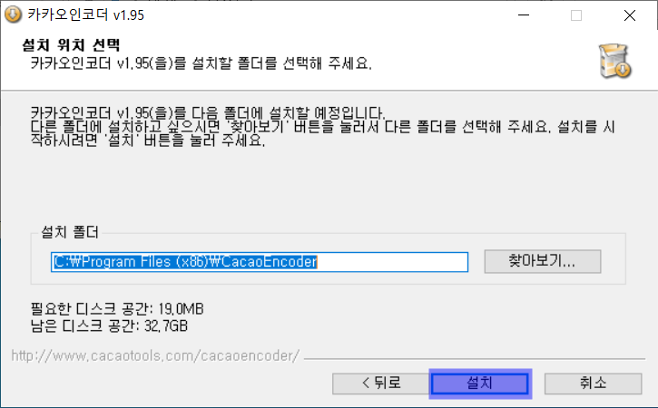 먼저 첨부파일 눌러서 내컴으로 다운 받으신다음 setup_cacaoencoder.home 를 눌러서 설치하십시요