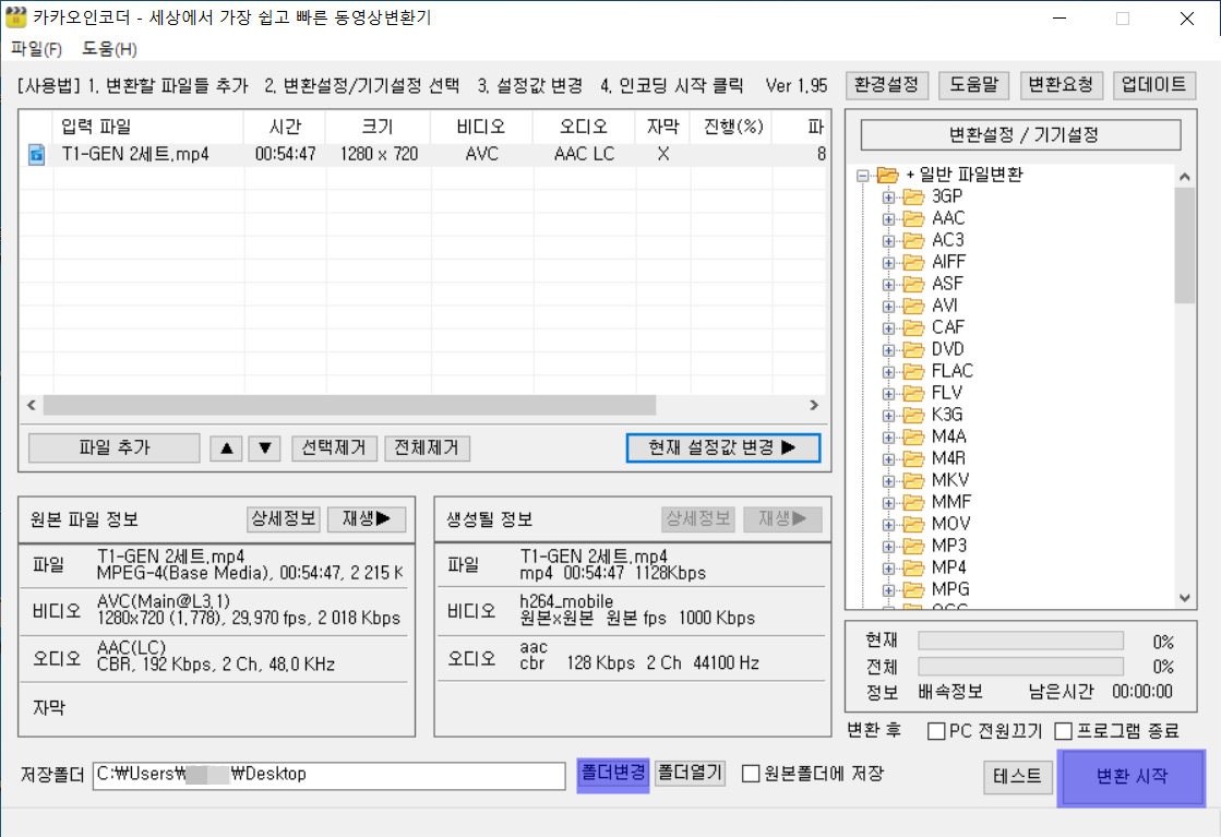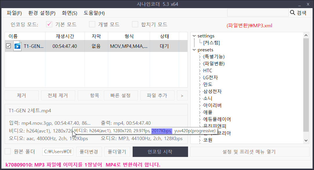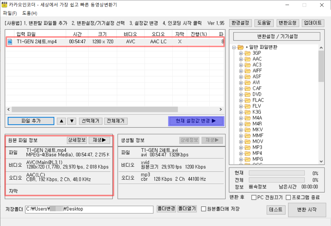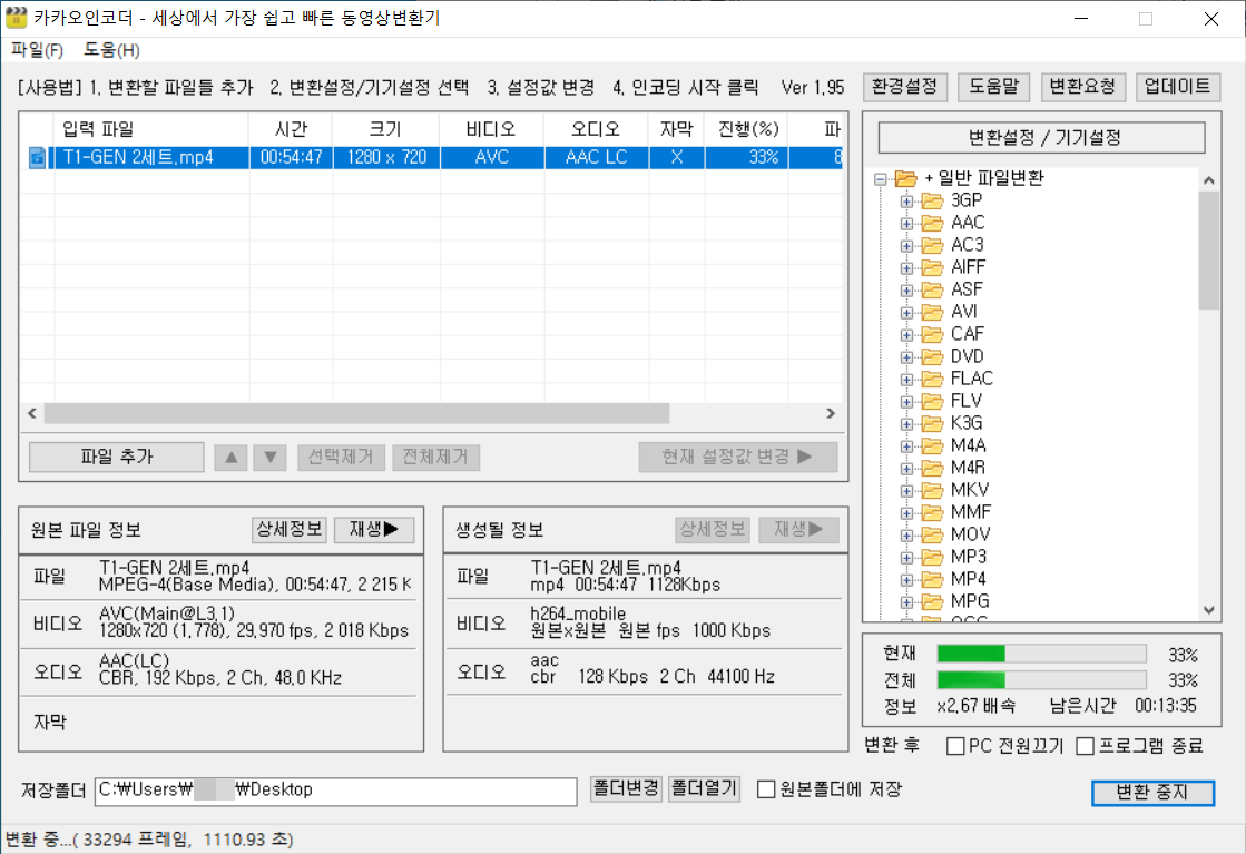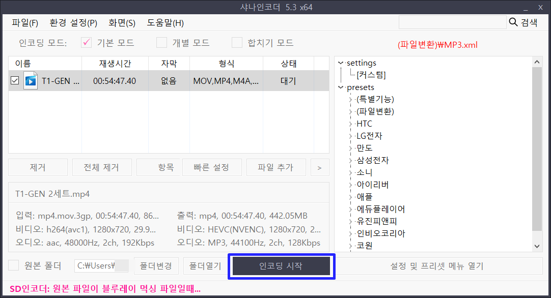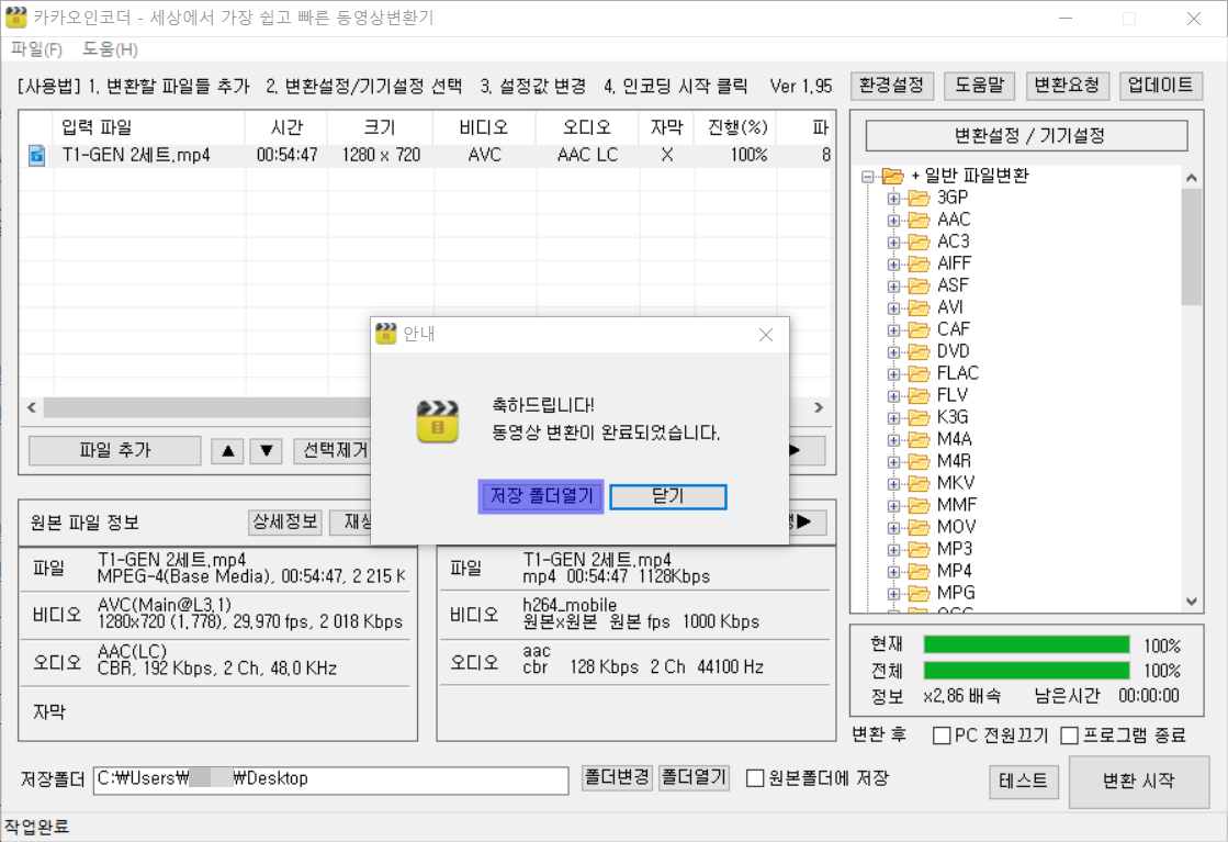 엔코딩이 끝나면 지정해주신 폴더에 가보시면 새로 생성된 파일이 있을겁니다