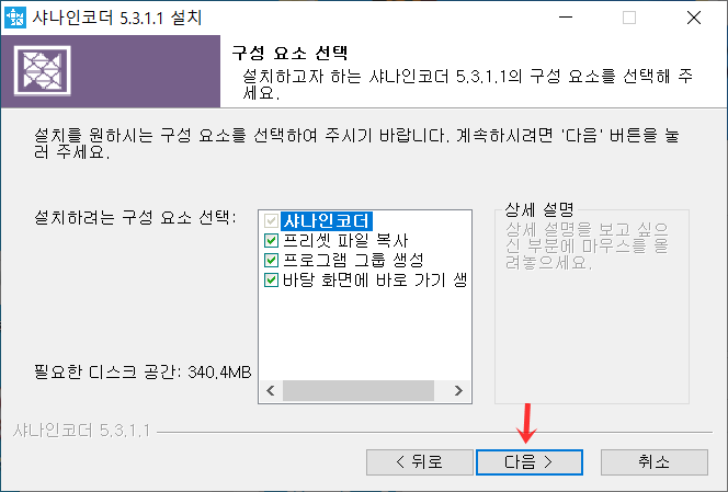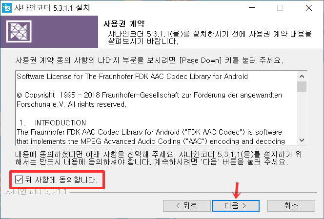 그럼 위와 같이 인코더 설치에 대한 안내가 뜹니다. 다음 버튼을 눌러주세요.