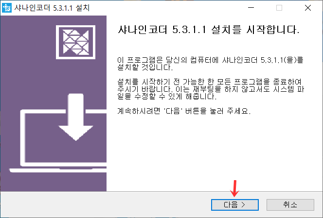 샤나인코더 설치 중 잠시기다려주세요.