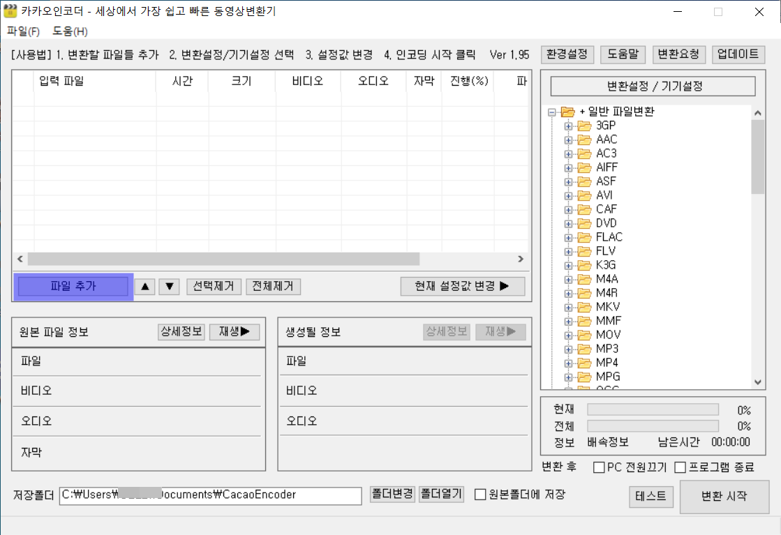 그런 본론으로 넘어가서 카카오인코더로 동영상 용량이기 시작해보겠습니다.
