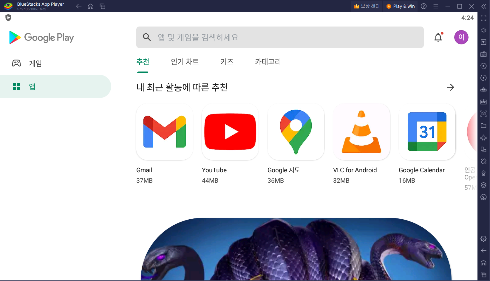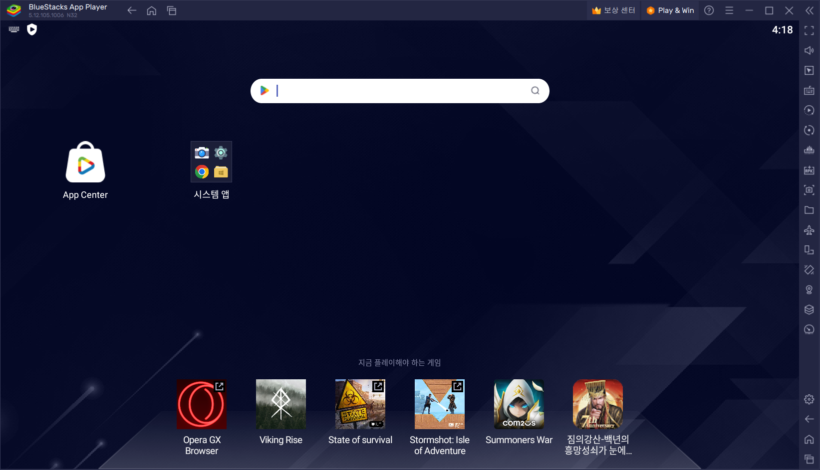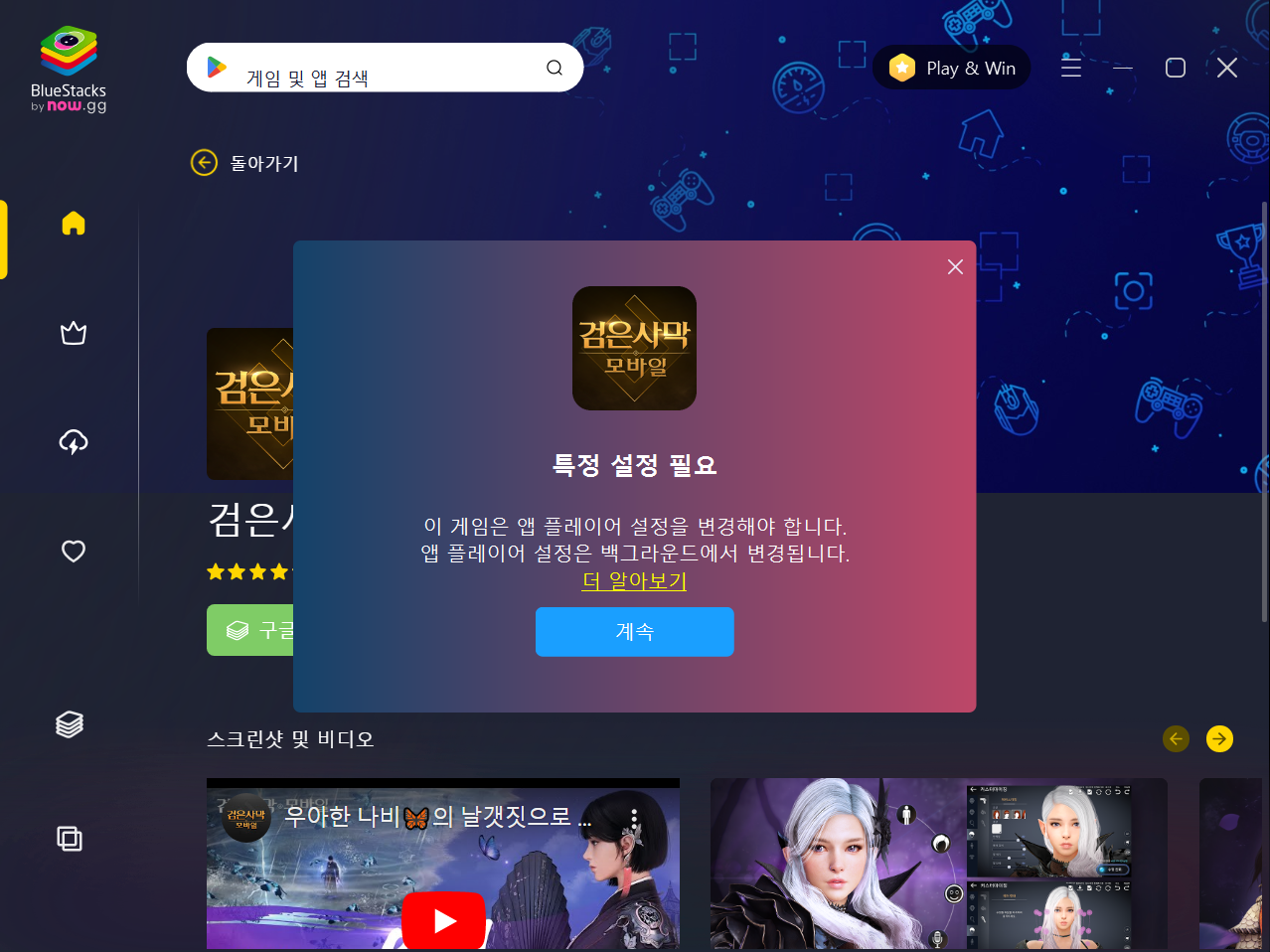 앱 플레이어 창이 뜨면