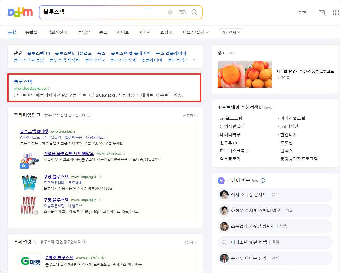 우선 Daum에서 블루스택 을 검색하신 후