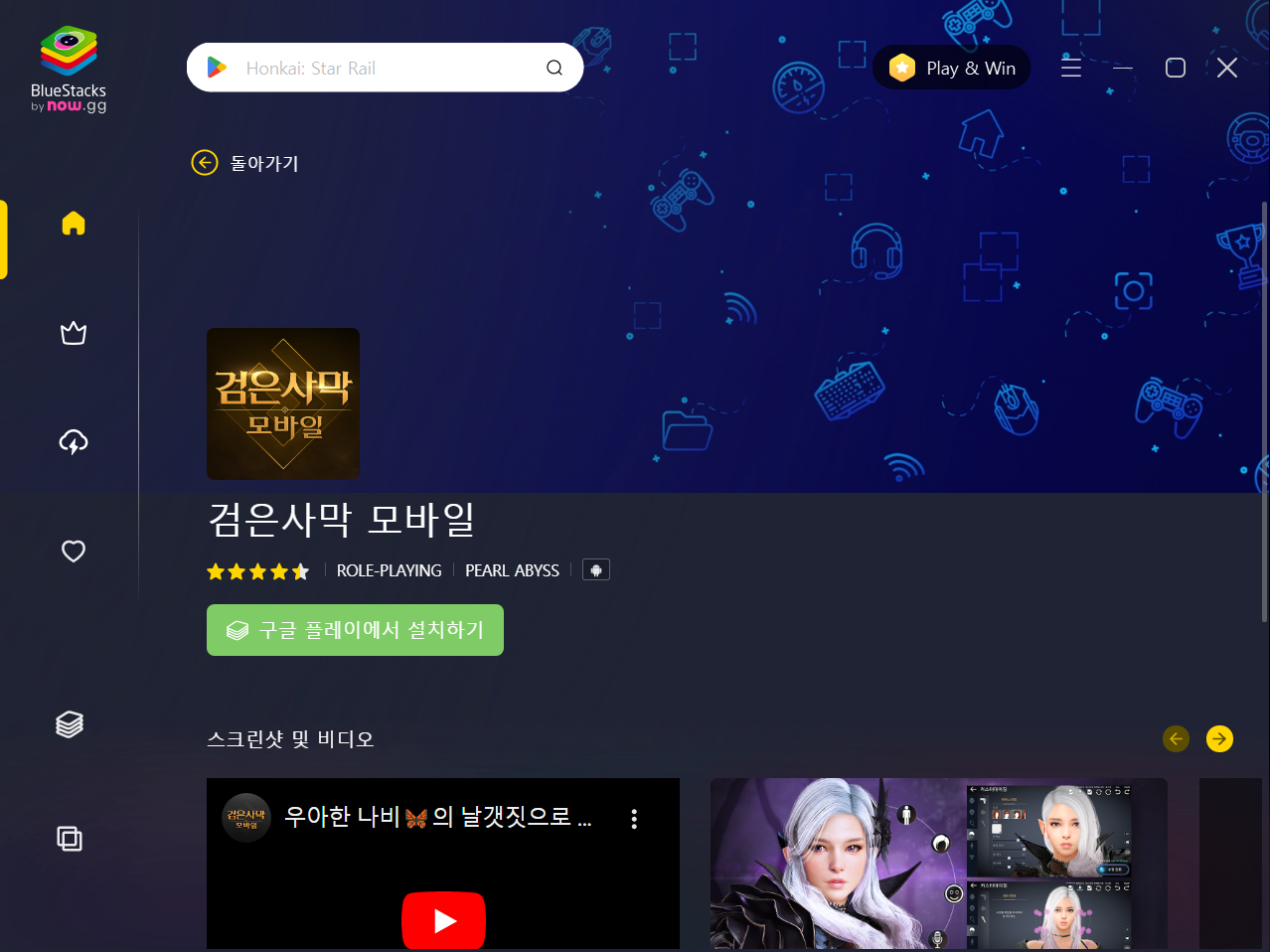 로그인후 검색창에 하고싶은 모바일 게임을 검색후 설치하시면됩니다.