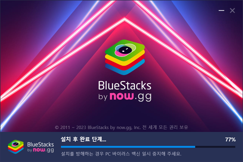 설치완료되면 자동으로 블루스택이 실행 됩니다.